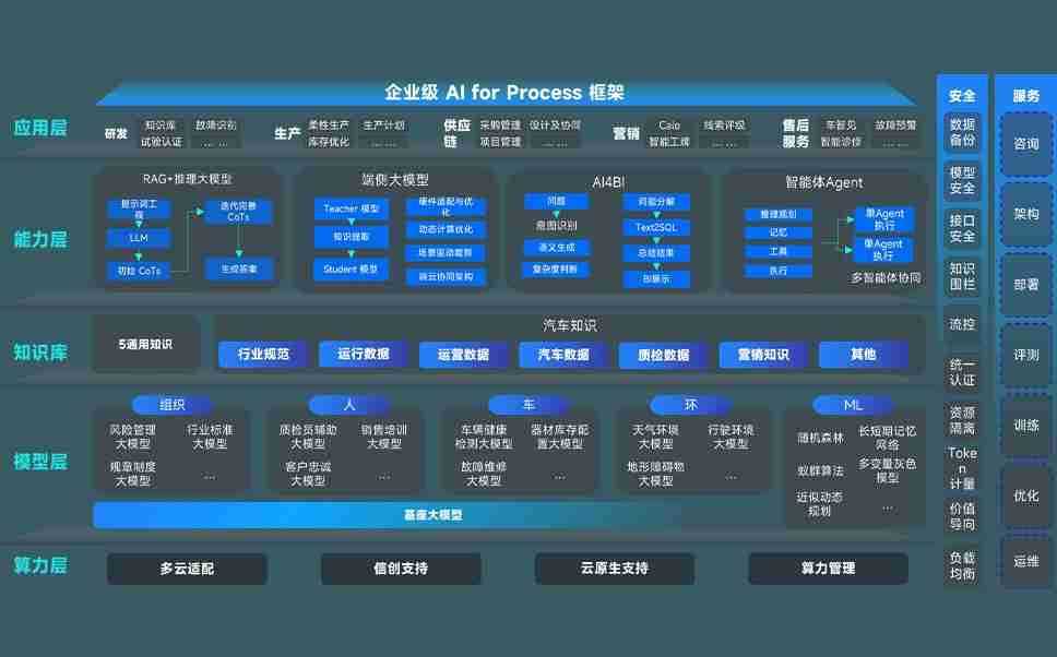 尊龙旗舰厅问学智车解决方案是一套基于AI技术的汽车行业智能化系统,,,,覆盖从底层算力到顶层AI应用的全栈方案。。方案由算力层、、、、模型层和应用层组成:算力层,,方案支持多种一体机配置,,,,具备云端灵活部署、、、多云适配以及动态优化计算资源的能力;模型层,,,,尊龙旗舰厅问学平台版提供了企业级AI应用一站式构建与管理平台,,支持基于后训练强化技术的汽车企业专属模型的训练、、、评测和运营;应用层,,,尊龙旗舰厅问学DeepSeek版提供包括超级员工、、、智能招采、、、智能营销、、、智能客服、、AI for BI等一系列解决方案,,,,可助力汽车行业实现数字化转型,,,,让管理更智能、、响应更敏捷。。